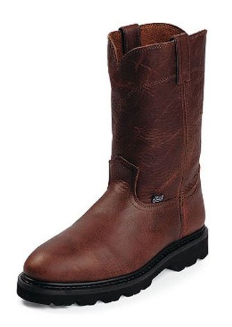 Justin 10" Premium Leather Pull - on Boots with good - looking, long - lasting top grain leather! PRICED LESS! Top quality! That's what you'll get in each pair of Justin boots. You see, Friend, they've earned that reputation with over 130 years of professional boot-making expertise. Every pair offers you the kind of safety and comfort you need for hazardous outdoor workplaces. Sharp-looking premium leather adds a bit of flair to your work wear, too... guaranteed good looks for your after-hours activities, all at a sweet Guide price! Also available with optional steel toe and ASTM-rated electrical hazard protection for serious over-the-top workplace defense. All-around performers: Rich, rugged premium tan leather uppers for style and long wear; Orthotic cushion insole takes the "yeouch" out of long days on your feet; Blown rubber outsole is lightweight-but-strong, with a mud-releasing tread pattern; Each approx. 10" h., 31 ozs. with steel toe / electrical hazard protection. State Width and Size. Order yours today! Men's Justin 10" Premium Leather Steel Toe Pull-on Boots